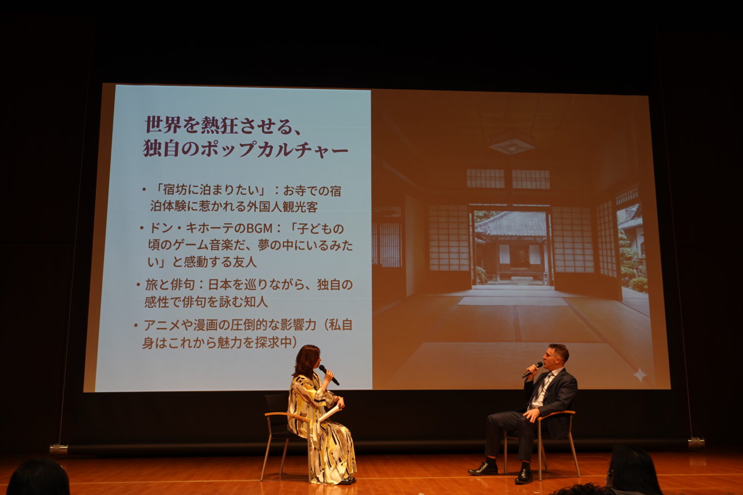 体験型英語教育プログラム「Momenta Kids」主宰フィリップ・ジェイコブソンさん。ドン・キホーテのBGMの話おもしろかった(笑)。外国の方から見た日本ってこんな感じなんだと思いながらも新しい旅の発見にもつながる、そんなお話でした。