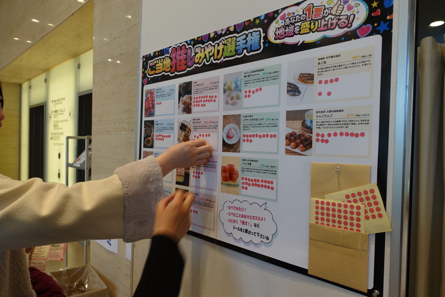 「ご当地推しみやげ選手権」では出展ブースからのご当地おみやげに来場者のみなさまに投票していただきました。食べてみたい!食べたことあるけどこれはオススメ!とにかく「推す!」などなど思うままにシールを貼ってもらいました。「貼るのは一枚だけですよね….」と迷いながら投票される方も。全部食べてみたいんだけど…と好奇心いっぱいの方も。旅に欠かせないおみやげ、それが目的の旅だってある。これからもマイ推しみやげ増やしていきましょう!