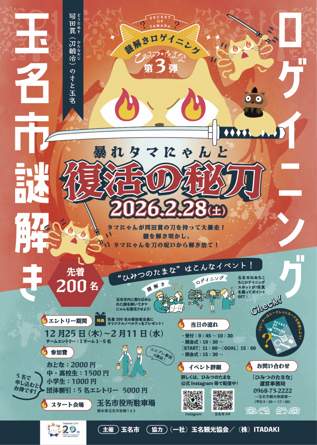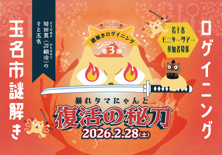 熊本県玉名市で開催される謎解きロゲイニング『ひみつのたまな』の第3弾が2026年2月28日(土)に開催されます。このイベントにNASSE読者限定で女子旅モニターツアーの参加者を若干名募集いたします。今回の謎解きのテーマは『同田貫(どうだぬき)』!刀好きにとっては玉名はハズすことのできないとても縁のある場所でして…。それは追ってご説明しましょう。