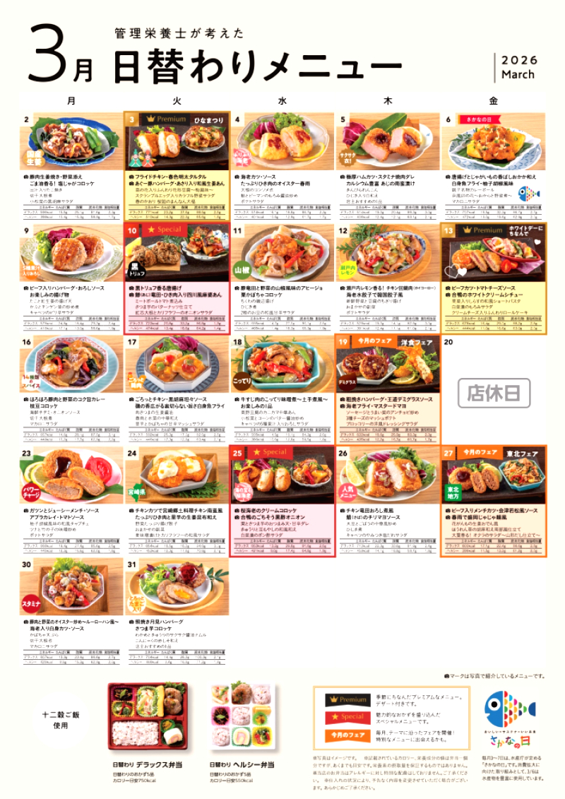 3月の弁当一覧表